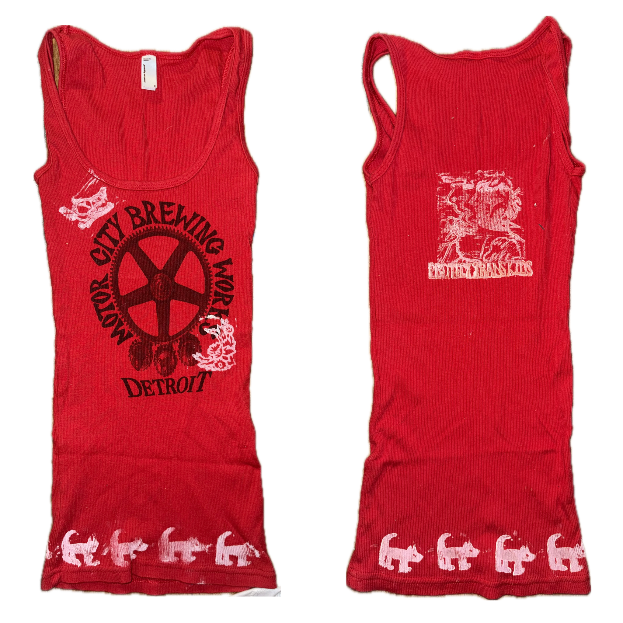 brewing company tank with prints on the back